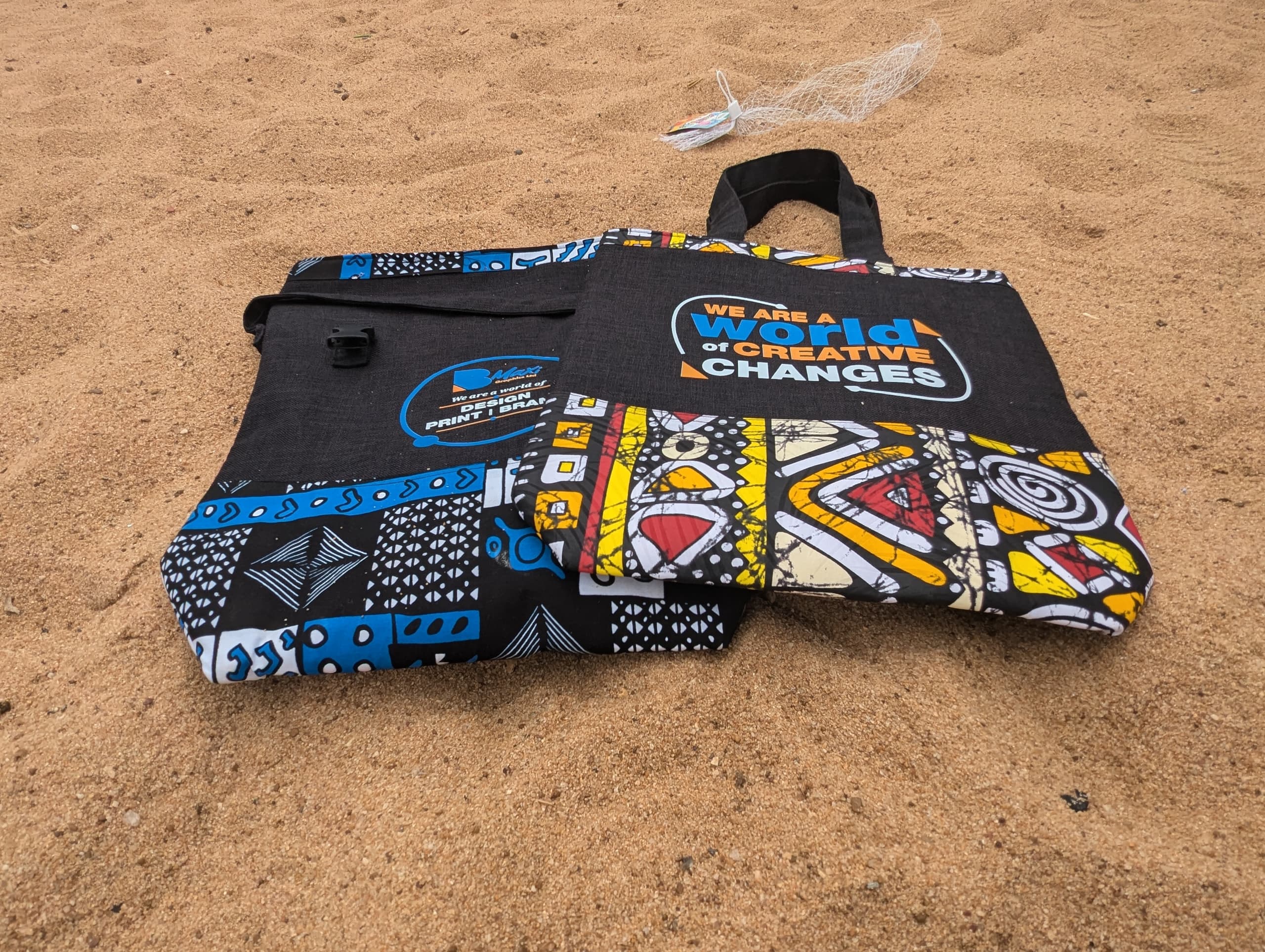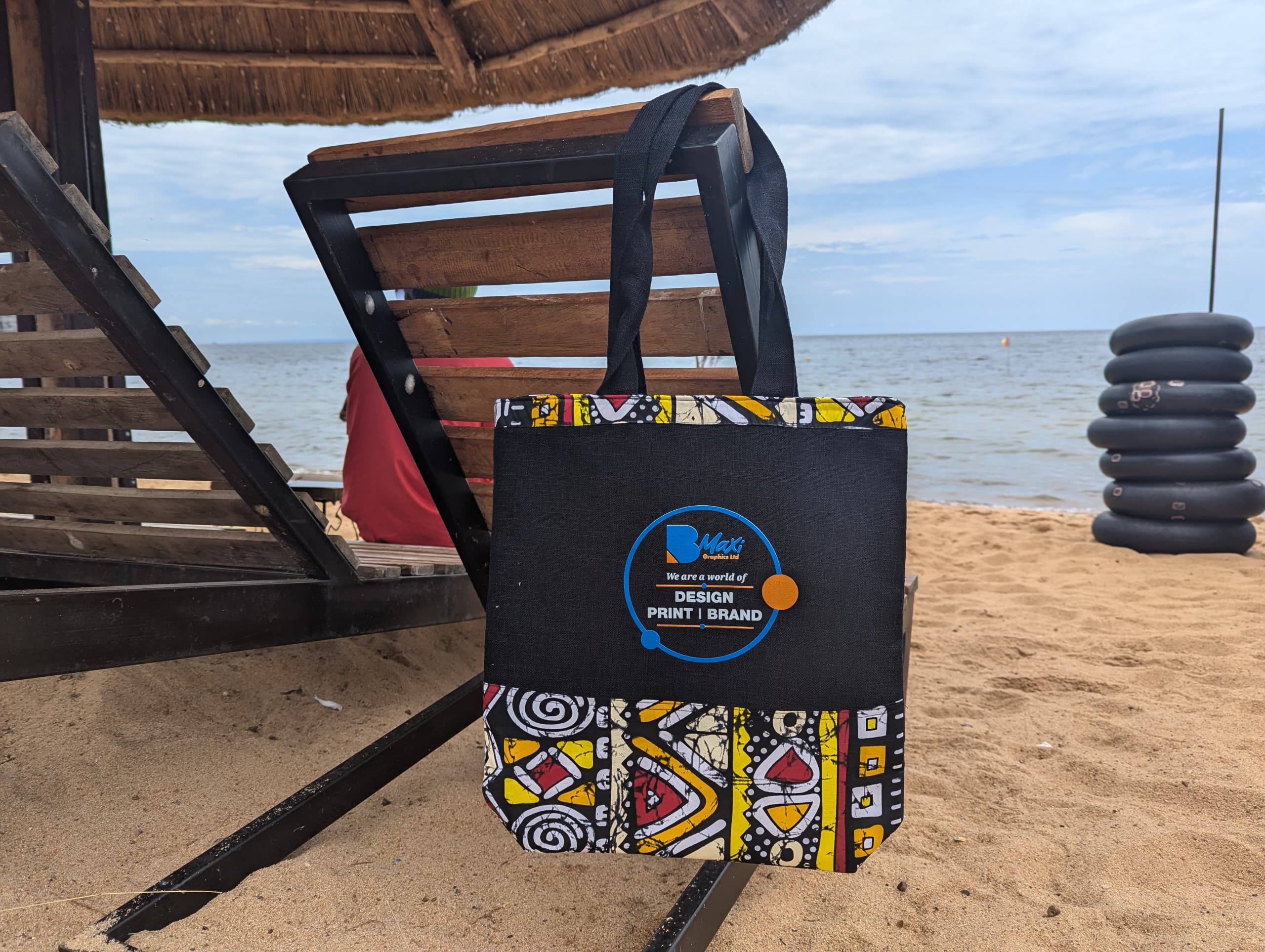 Experience the perfect blend of tradition and modernity with our exquisitely crafted bag, accessorized with vibrant kitenge fabric. Each piece is custom-branded to reflect your unique style, offering a fusion of cultural richness and contemporary design.